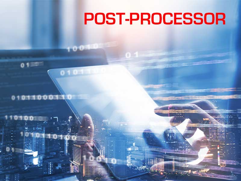 Il post-processor è, quindi, un software che trasforma le entità geometriche (linee, archi, cerchi, direzione asse utensile ecc.) in un codice comprensibile dal controller della macchina CNC.