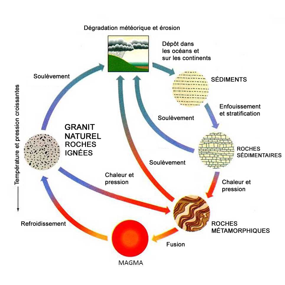 Le granit naturel est une roche ignée générée par la solidification d'une masse magmatique dans le manteau terrestre. Ce processus dure des millions d'années, ce qui confère au granit des propriétés particulières de stabilité technologique que l'on ne retrouve pas dans d'autres roches.