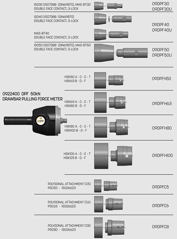 Grazie a una serie di adattatori intercambiabili, il DPF è compatibile con tutti i principali standard di attacco mandrino portautensile, diventando così uno strumento estremamente versatile e facilmente integrabile in qualsiasi officina.