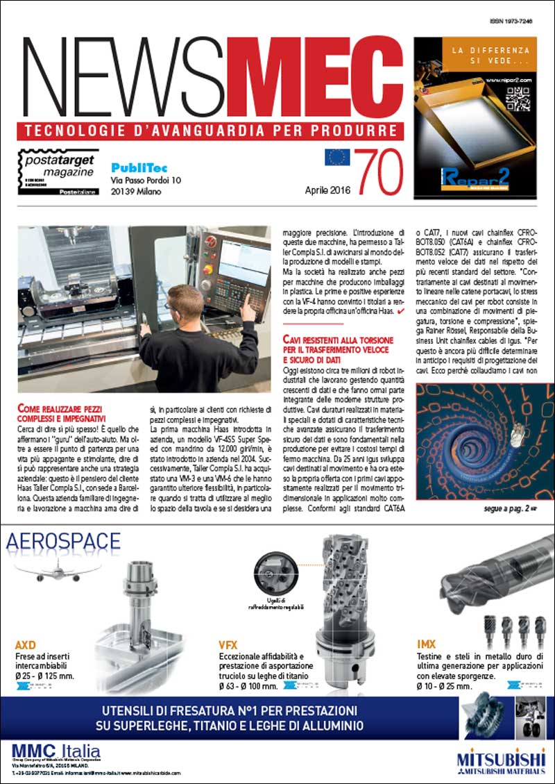 Il reportage di Tecnologie Meccaniche ci ha dedicato più pagine all'interno della sua rivista, tra cui una pagina pubblicitaria.
