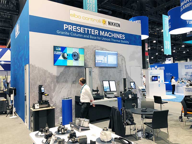 L’obiettivo di questa fiera è stato quello di presentare al pubblico americano tutta la gamma di prodotti e soluzioni offerte da Elbo Controlli NIKKEN: oltre a tutta la gamma di preset (dall’entry level E236+ fino al top di gamma E68LA IS MUST), i visitatori hanno potuto toccare con mano i due sistemi di gestione utensili TID e TP32.